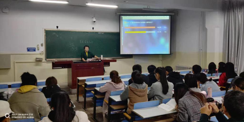 活动邀请公司理公司党委副书记邹爱婕老师担任本次讲座的主讲,就两性问题开展讲座。邹老师引经据典,结合大数据详细地为同学们讲解了两性关系。并以问卷调查的形式渐进主题,同学们积极参与互动。邹老师幽默风趣的语言极大的提高了同学们的学习兴趣,迎来一次次热烈掌声,将讲座气氛逐渐推向高潮。