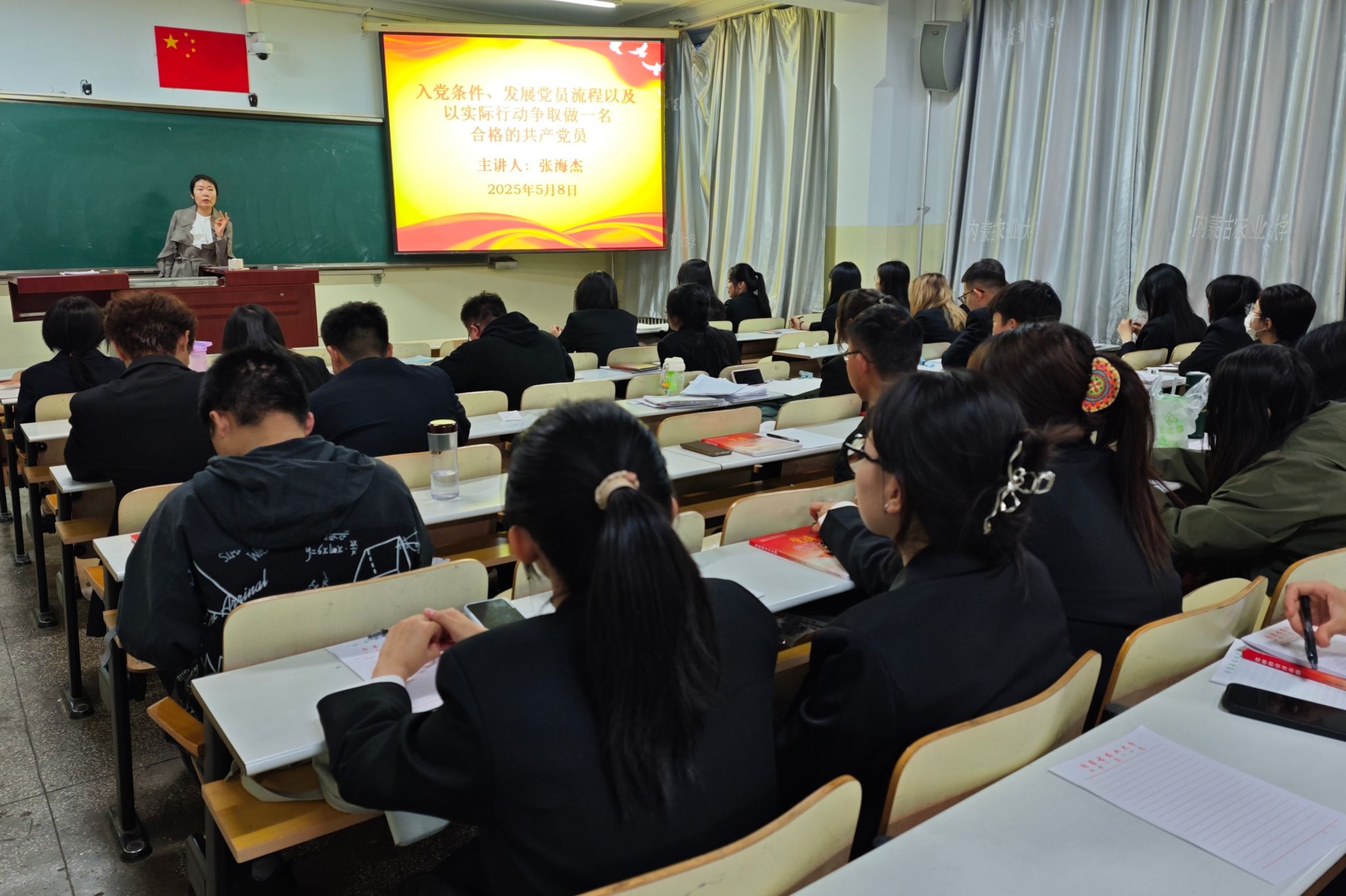5月8日晚,公司分党校第三十五期入党积极分子培训班第三讲在东区主楼202教室举行,公司团委书记张海杰老师担任主讲。