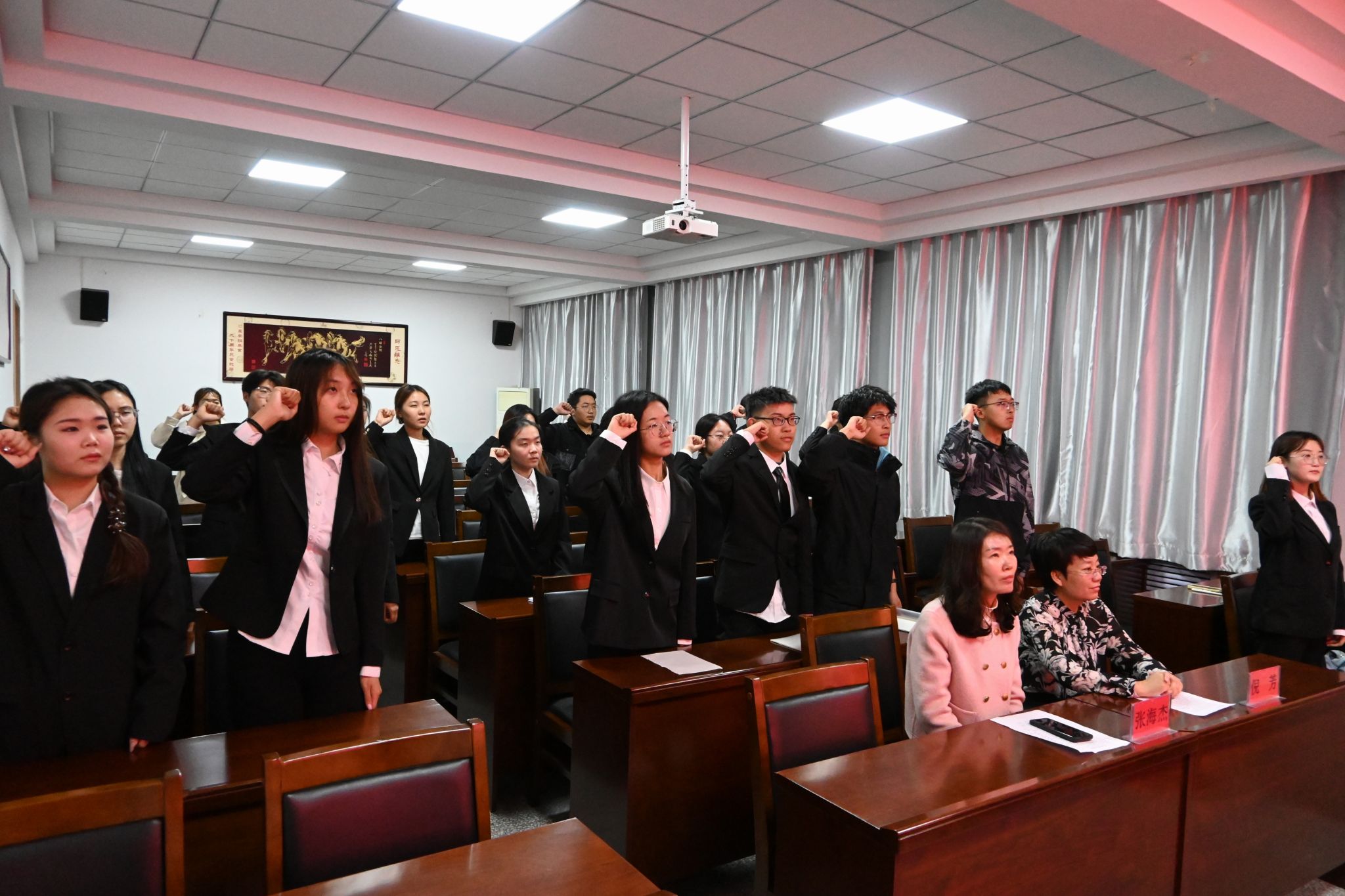 仪式在庄严的国歌声中拉开帷幕,全体人员起立,高唱国歌。激昂的旋律在会场中回荡,彰显出青年们对国家的热爱和为民族事业奉献的坚定决心。
