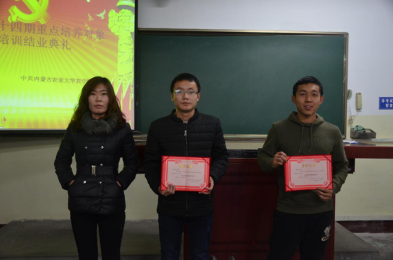 会议伊始,党务助理杜青圃宣布了优秀学员名单,并由张海杰老师为优秀学员屈子人、刘宇飞颁发了证书以示鼓励。重点培养对象屈子人作为此次党课培训的优秀学员代表上台发言。他说到,在本次学习过程中,使他深入了解党的方针与政策,进一步了解了党的核心知识以及初心使命,同时,也坚定了从思想上靠近党、从行动上响应党的伟大精神信念。最后,为了保证每一位学员都能成功入党,张海杰老师提到入党志愿书的重要性,为同学们仔细讲解了填写入党志愿书的流程。同时张海杰老师对同学们给予了嘱托:希望大家能够充分发挥先锋模范作用,以实际行动争取早日加入党组织。梦在前方,路在脚下,同学们要实践创新,积极践行社会主义核心价值观,用党的信念锤炼自己,为实现伟大的中国梦而不懈奋斗。