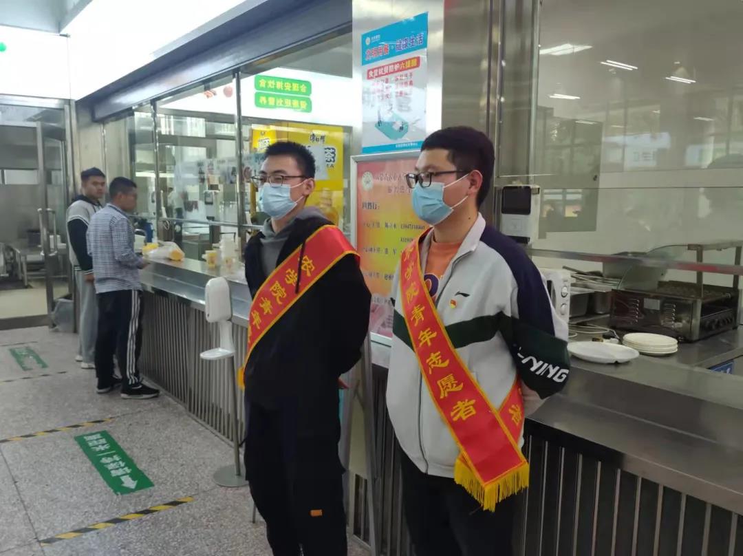 党员们在做好个人防护的同时耐心引导同学们检测体温、佩戴口罩、保持安全的距离以及指引员工出入等。党员志愿者认真履行自己的职责,坚守岗位,合理分工,以常态化、高标准、严要求完成了食堂秩序引导志愿服务,以实际行动助力了疫情防控工作。
