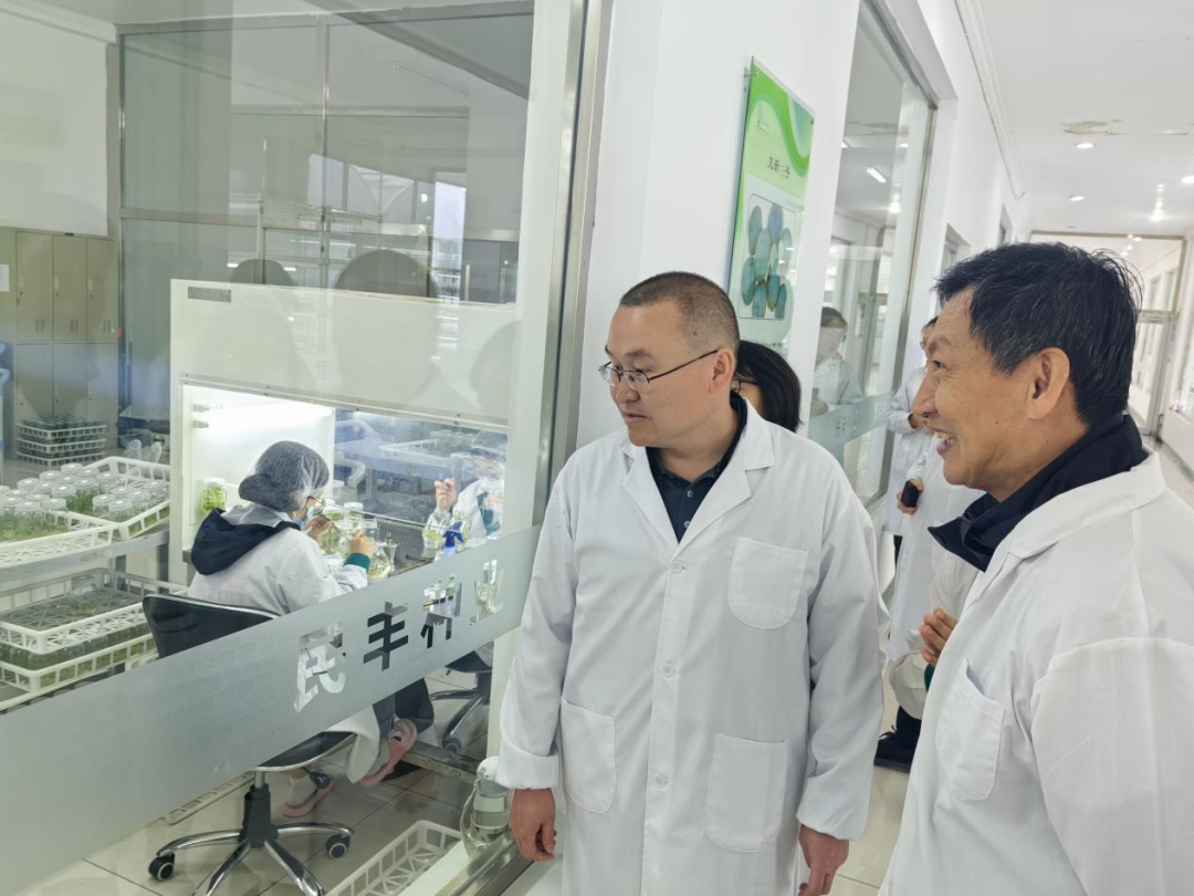 活动中,党员教师们参观了内蒙古民丰种业公司的企业文化展示室、组培车间、农化分析室、资源保存室等。双方还就人才培养、科研创新等开展了深入的交流座谈。座谈会上,乌拉书记就调研内容,与企业代表共同探讨了实践育人的新思路新方法,探索提出“企业课堂”的育人方向,得到了企业方的认同。内蒙古民丰种业有限公司农业事业部总经理李颖风表达了与公司未来共同培养实践型人才的信心与期望。