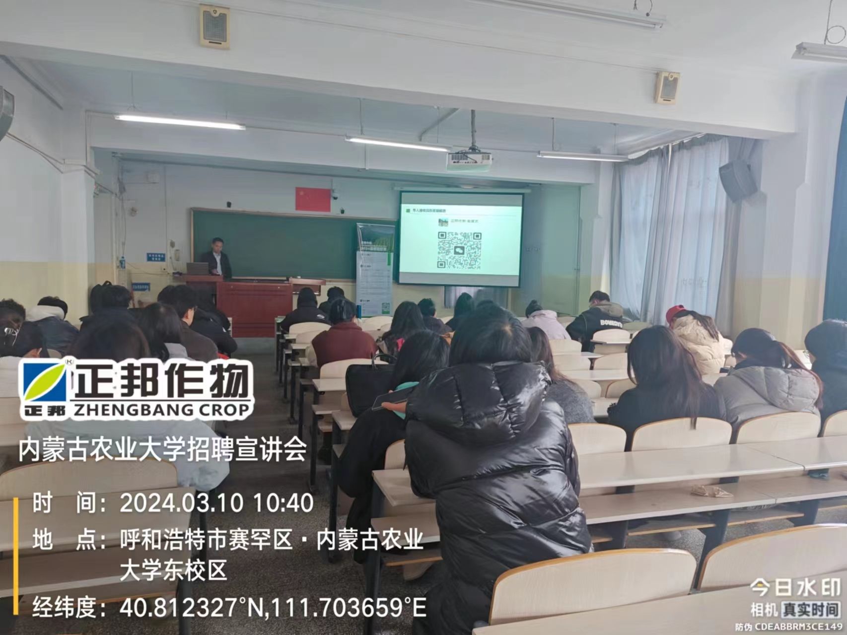 3月10日上午10时,江西正邦作物—北方公司在东校区主楼206室召开招聘宣讲会,本次宣讲会以线上线下相结合的方式进行。伟德、园艺与植物保护公司和草原与资源环境公司的2024届毕业生及部分大三员工参加,线下有30人左右、线上有20多人参加。