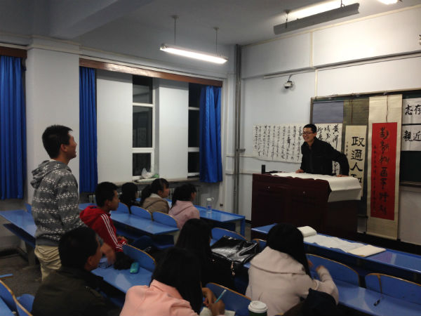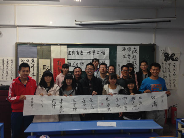 此次活动的目的是为了陶冶同学们的情操,培养同学们对文学创作的兴趣。活动开始,社团部部员向同学们展示了一系列龙飞凤舞、笔翰如流的文字横幅。接着,趣味斋书画社社长以故事的形式向社员们介绍了文字的由来及中国历代书法家,他的风趣幽默赢得了在场人员热烈的掌声。社员们认真聆听的同时也向社长提出了如何练好书法的问题,社长对此一一做了详细的解答并亲自执笔为同学们演示书法。随后,社员们用社长讲解的书写方式在纸上用毛笔签下了自己的名字。最后,社长与全体社员合影留念,将这一美好时刻定格。