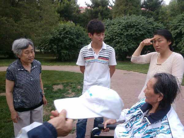 当日下午,我们便将温老师从四楼背下,推着轮椅于附近的小花园中,周围的老教师们都前来问候,并充分赞扬了我们,温老师自从来到花园,嘴里便一直唱着红歌,歌声优美,马老先生告诉大家,温老师当年也是多才多艺,还得过舞蹈比赛的奖杯。看到现在温老师脸上久违的笑容,我们都非常高兴,大约一个小时后,大家又将温老师背回家中。