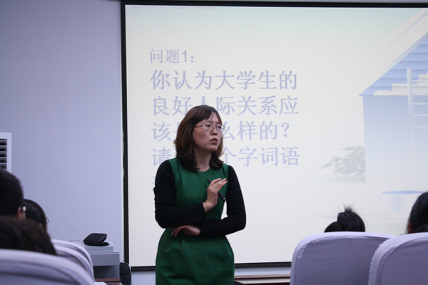 讲座中,刘老师讲到想要有一个好的人际关系,必须要先学会悦纳自己。对自己有一个正确、客观且自信的认知,懂得挖掘自己的潜力,才能更好的和他人搞好关系。随后,刘老师告诉大家如何处理好来自宿舍、班级、爱情及老师和家长四个方面的人际关系。并提出了宝贵的建议,她建议同学们要主动与身边的人沟通,扩大自己的交友范围,更要懂得与人交谈时的技巧,用心去交每一个朋友。刘老师声情并茂的讲述,使同学们受益匪浅,更懂得了如何处理好人际关系。