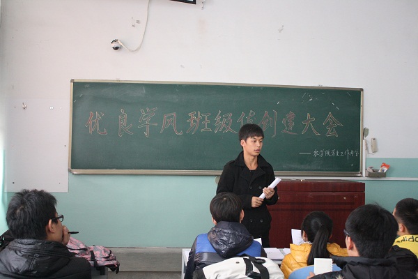 11月14日中午12:30,为了响应党的十八大的号召,加强校园文化建设,构建和谐校园,激发员工的成才意识和集体荣誉感。伟德于主楼116举办了“优良学风班集体”创建活动。伟德员工工作辅导员奥琦老师、员工会主席于海蛟出席会议。