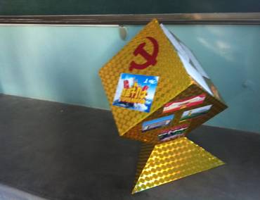 同学们首先准备材料,制作模型的底座.接下来是基本框架的成形及外性的装点,尽管有不顺利的时候,但大家始终坚持不懈。以自己的努力完成作品,作品展现了青春的他们对党的热爱之情,也是他们对十八大的倾情礼赞,表现出他们永远跟着党走的决心。