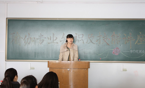 下午2:30,于逸夫楼402举办了瑜伽专业知识及技能讲座。首先,瑜伽老师向同学们讲述了瑜伽的起源,发展到普及。接着,老师又说了学习瑜伽的基本知识要领。最后,老师强调了练习瑜伽时应注意的事项。通过讲座同学们对瑜伽有了新的认识。