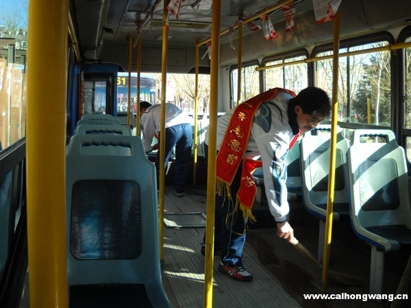 半个小时后,同学们来到了61路公交车停车处,开始了为期半天的义务洗车活动。同学们都很积极,打扫车厢、收拾座位、擦拭玻璃、清除异物等,过路的市民不断的投来赞赏的目光。虽然天气不是很好,还刮着涩涩的春风,但是这丝毫减退不了他们劳动的热情。经过一上午的辛苦劳动,一辆辆公交车被擦拭的干干净净。