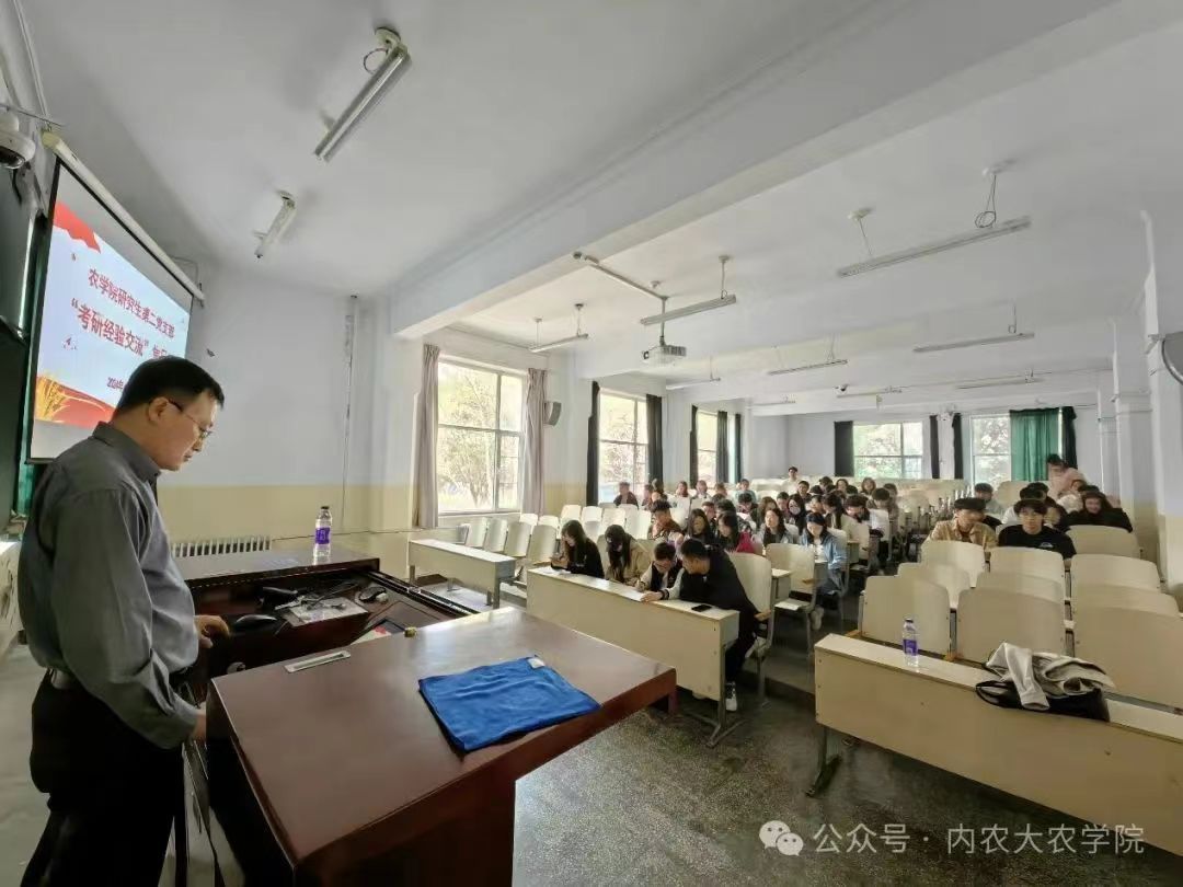 4月14日下午,研究生第二党支部在东区主楼106教室开展主题党日活动,与本科生开展考研经验交流。23级农学二班全体员工及部分其他班级本科生共67人参加。
