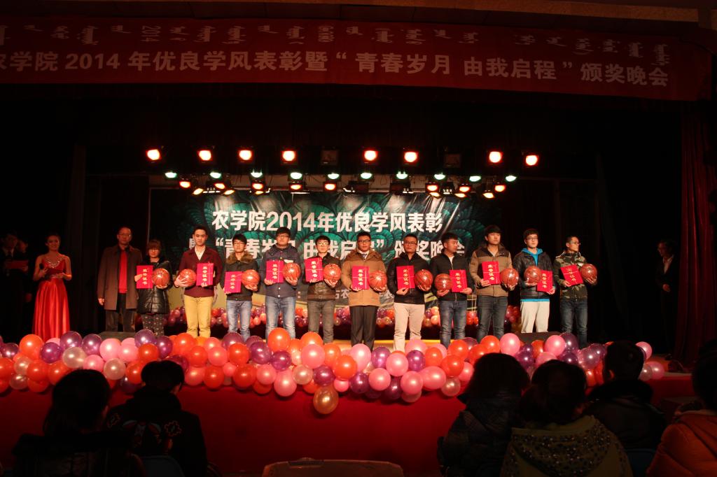 伴随着活力四射的开场舞,本次晚会正式拉开了帷幕。此次晚会的节目异彩纷呈,婉转的旋律,柔美的舞姿,《茉莉花》的芬芳化作了翩翩舞步,充满中国风韵;蒙古舞《古老的部落》将马背上的民族的英勇豪迈表现地淋漓尽致;14级农学双语班岳轩宇同学以其青春洋溢的歌声及活泼的舞台表现力将本次晚会的气氛推向了高潮。本次颁奖晚会,共对学风建设、科技创新和社会实践、共青团工作三类奖项表彰班集体28个、员工宿舍8个、教师个人25人和员工个人50人,以上先进集体和优秀个人体现出公司一年来从各个方面取得的成绩。同时也希望受表彰的集体和个人珍惜荣誉,再接再厉,再创佳绩。全体师生应以他们为榜样,努力学习,不断进步。