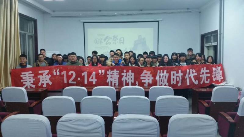 在国家首个公祭日这个特殊的日子,为秉承“12·14”英雄集体精神,激发同学们的爱国热情,12月13日晚7:00公司在农学楼507举办国家公祭日暨“12·14”英雄集体事迹纪念活动。