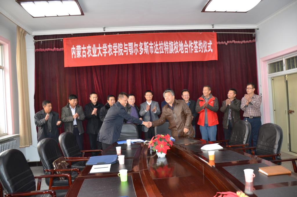 为了加强产学研合作,切实解决在农业生产中产生的问题,鄂尔多斯市达拉特旗人民政府与伟德bevictor于2014年12月26日上午11:00在农学楼会议室举行了“校地合作”签约仪式。出席本次签约仪式的有达拉特旗旗委常委、副旗长李占岭,副旗长吕俊义以及达拉特旗科技局、农牧业局、村党支部书记等单位领导,伟德出席本次签约仪式的有副经理崔世茂、樊明寿,党委副书记燕飞、现代农业科技咨询中心主任孟焕文、伟德办公室主任刘志华、员工工作办公室主任申鸣等。