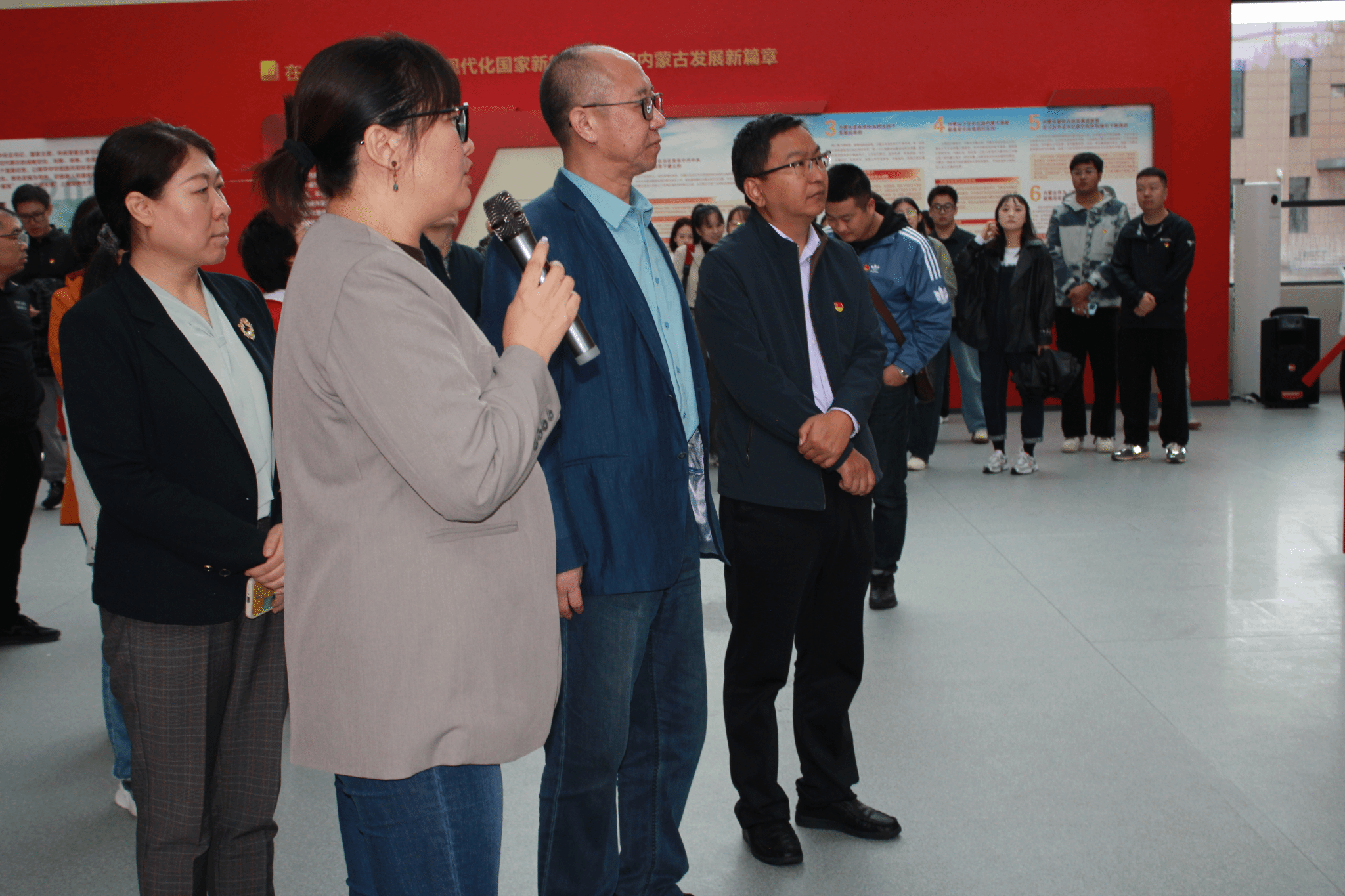 在来到内蒙古财经大学铸牢中华民族共同体意识实践教育基地时,讲解员通过对"习近平总书记关于加强和改进民族工作的重要思想"、"习近平总书记关于加强和改进民族工作的重要思想在内蒙古的生动实践"、"全方位建设模范自治区,讲好内蒙古民族团结进步故事"等几个部分的讲解,以丰富的内容、多样的形式向公司师生展示了中华民族共同体意识的内涵与价值,帮助公司师生更深刻的了解了党和政府在推动民族地区发展和保障民族权益方面所取得的成果,回顾了中华民族共同体的形成发展史。