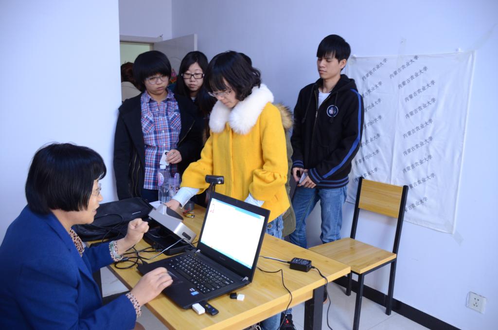 2015年4月1日公司党委副书记燕飞、院办主任刘志华、公司教学办公室主任佘国珍一行前往公司教学实践基地锡林郭勒盟正蓝旗坤元太和农业科技有限公司看望实习实践的老师与员工。并为因实习不便返校的20名员工参加四六级英语考试进行现场指纹静脉信息采集,此项工作得到了公司教务处的大力支持。