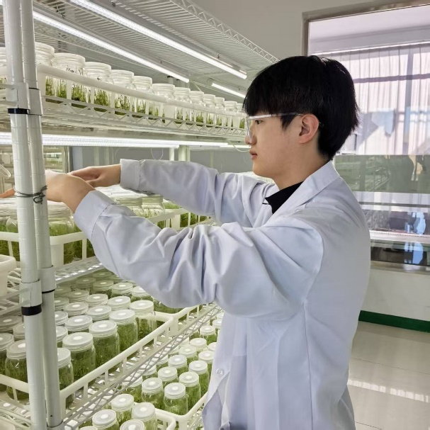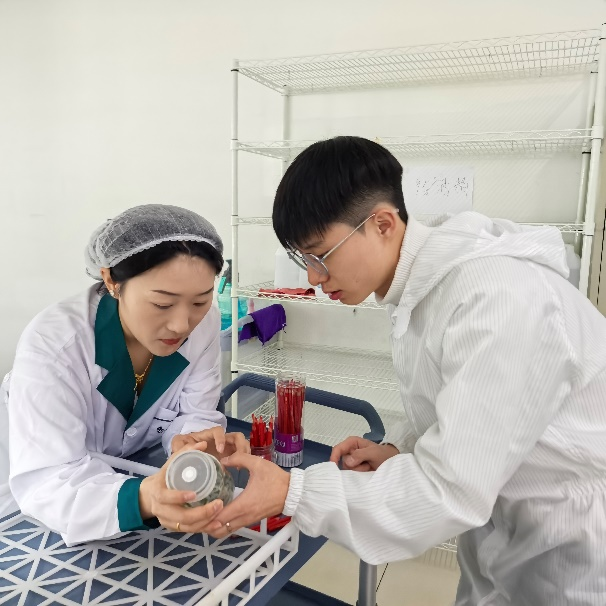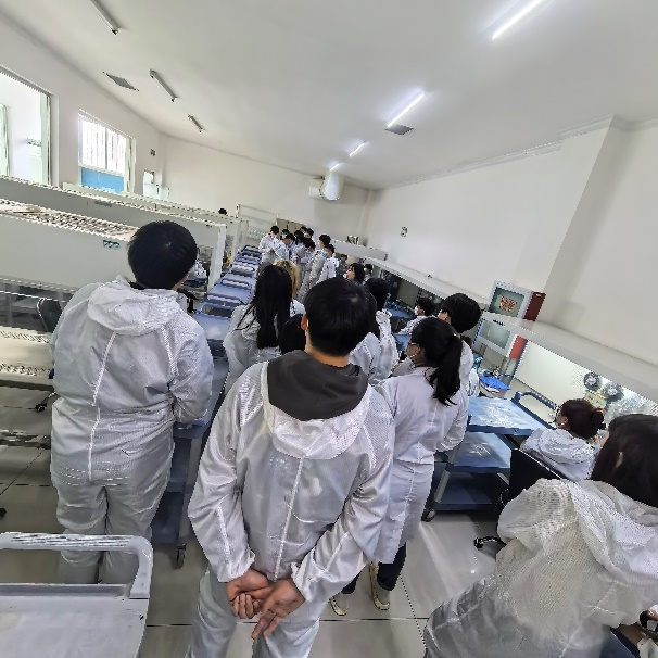 实习第一天于静老师鼓励同学们要认真工作,努力提升为校争光并赋诗一首(图2)。组培部冀娟老师带领同学们参观了现代化组培车间,部门主任王辉系统讲解了车间整体布局、生产流程及操作规范(图3)。后勤部郭主任就生活区的住宿标准、作息制度及食堂管理规定作了说明(图4)。值得一提的是,为解决用餐高峰问题,于静老师积极协调后勤部门,为实习生争取到了提前30分钟就餐的便利安排。在适应阶段,同学们展现了良好的职业素养。尽管初期出现身体不适等情况,但到第一周末,大部分同学已能顺利完成既定工作任务。进入第二周后,实习生们完全适应了企业生产节奏,平均日产量稳定达到60瓶/天的标准,有效缓解了企业的生产压力,获得了公司管理层的高度评价。图5-8为同学们工作掠影。