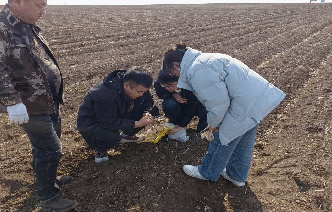 同学们根据梅花法(也就是“五点取样法”),使用铁锹取样(0-20cm耕作层为重点),日均完成20+个采样点。 通过测土壤墒情的传感器,同学们发现同一地块阳坡与阴坡含水量相差最高达15%;结合GPS定位数据,可以实时了解取样坐标,精准定位。