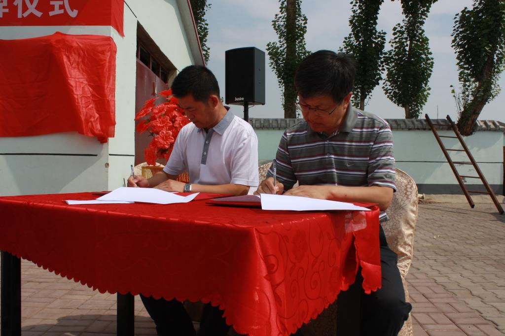 高聚林经理与哈林格尔镇镇长贾俊峰进行校企合作签约仪式 伟德 王艳红 摄 |