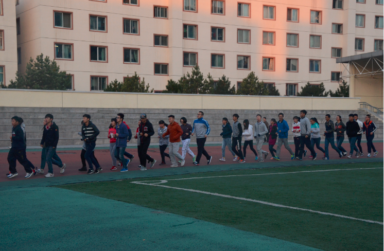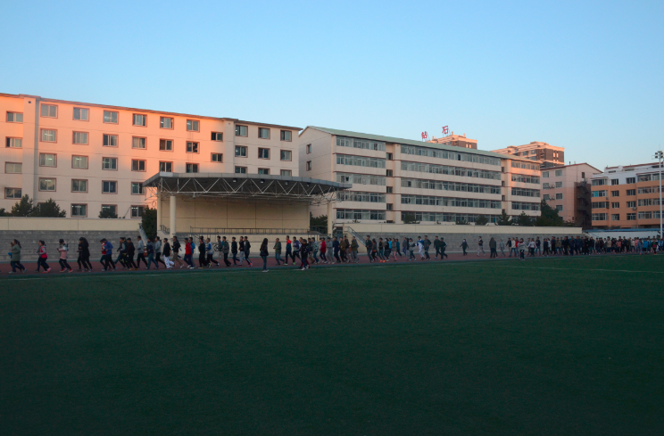 在跑步之前,体育部负责人进行了点名并简述了有关晨跑的奖惩制度。随后,同学们整齐列队,伴随着整齐的脚步声,围绕着操场开始了晨跑。在晨跑过程中,同学们通过响亮有力的口号调整步伐,队伍中同学彼此鼓励,坚持跑完全程。口号声、脚步声,欢笑声使得初秋早晨微寒的校园充满了温暖。