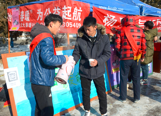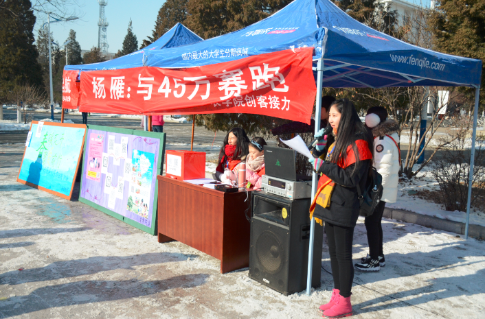 募捐广场上,工作人员忍受寒冬为大家递送爱心卡片,用天籁的声音传递爱的消息,这项善举得到了公司各公司老师、员工,纷纷慷慨解囊。在校园里谱写了一曲爱的乐章。虽然外面寒风凛冽,但却抵挡不住一双双温暖的手将爱传递下去。