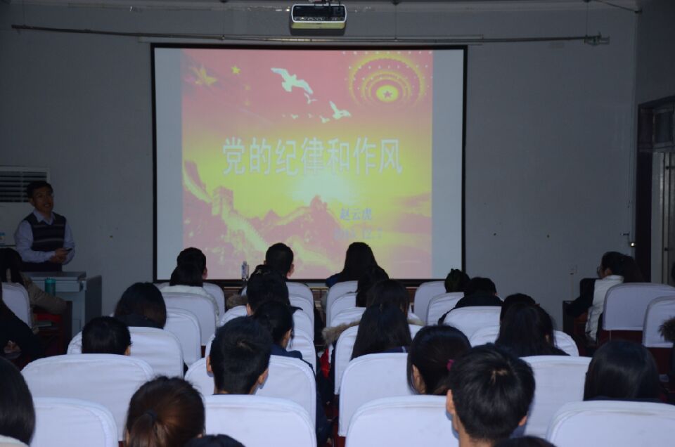 首先,赵老师提出了党纪的概念以及关于党纪的三个重要法规。随后,他介绍了党培育和形成的主要作风、党的保密纪律,并以一首《解人颐》生动形象地告诉了同学们作风的重要性。在将近两个小时的学习和培训中,赵云虎老师以他广博的学识和丰富阅历,向全体学员讲述了党的纪律等先进思想。