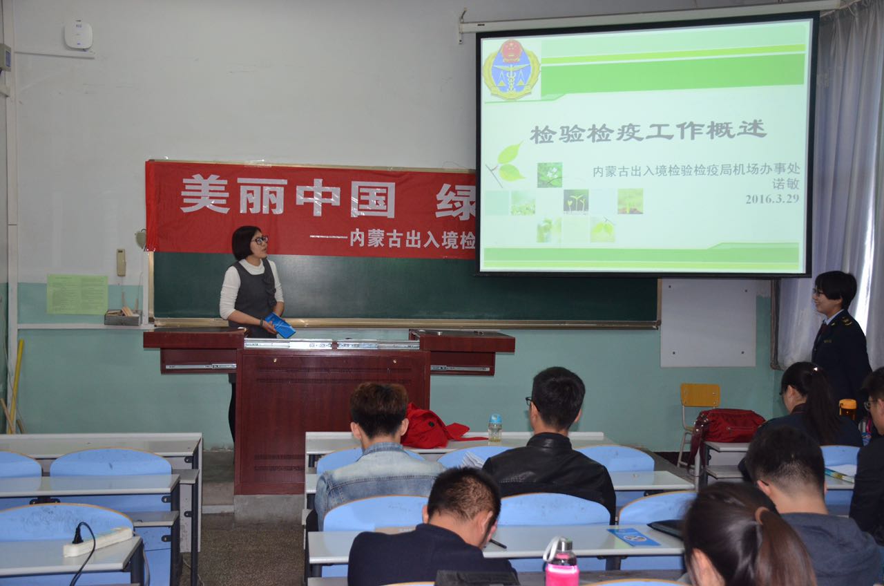 3月29日下午2:00,公司邀请到内蒙古出入境检验检疫局机场办事处的专业人员在东区主楼107教室举办了“美丽中国 绿蕾护航”植物检验检疫知识讲座,公司植物保护专业教师谭瑶和2013级植检班全体同学参加了本次讲座。