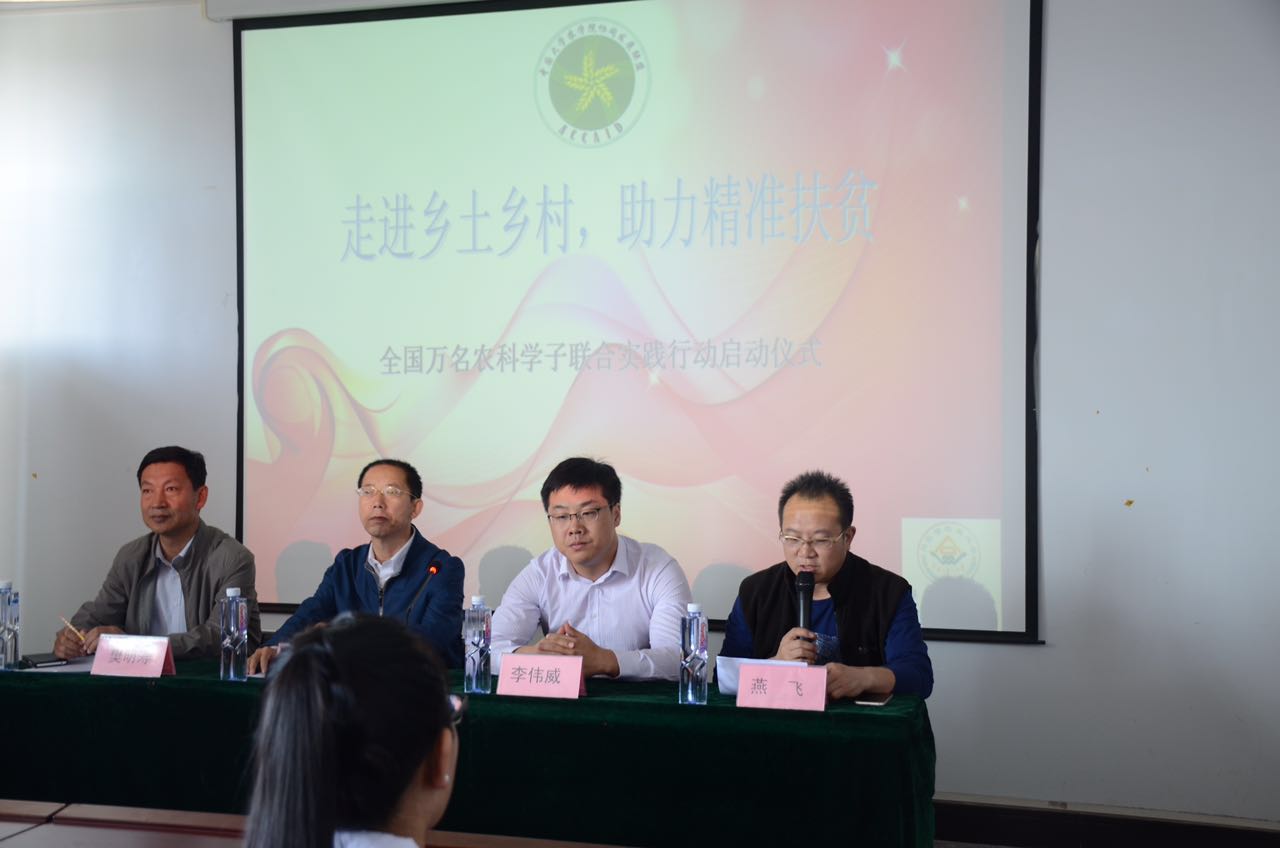 5月28日上午9:00,公司于农学楼507室举行以“走进乡土乡村、助力精准扶贫”为主题的全国万名农科学子联合实践行动启动仪式。校团委副书记李伟威,农学院分党委书记马强,副经理樊明寿,党委副书记燕飞,员工工作办公室主任申鸣及实践队员代表参加了此次活动,活动由燕飞副书记主持。