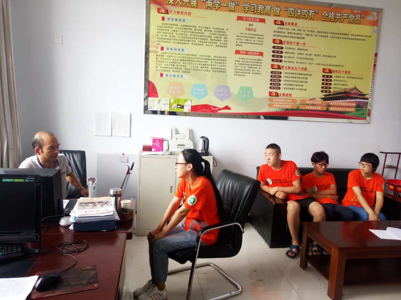 在团结乡队员们来到了村长康亮的家中,村长向我们详细的介绍了该村的发展历史、经济状况以及农作物种植等方面的内容。我们还了解到,该村的人口老龄化现象十分严重,如今村里留守的几乎都是孤寡老人和儿童。随后,在村长的指引下,我们来到了广场紧张有序地开展宣传活动,队员们纷纷张贴条幅、分发农业种植技巧传单。