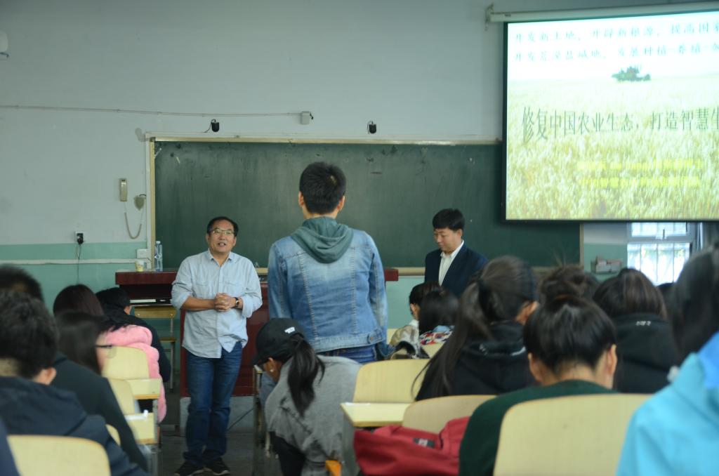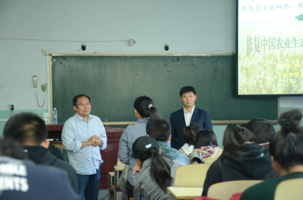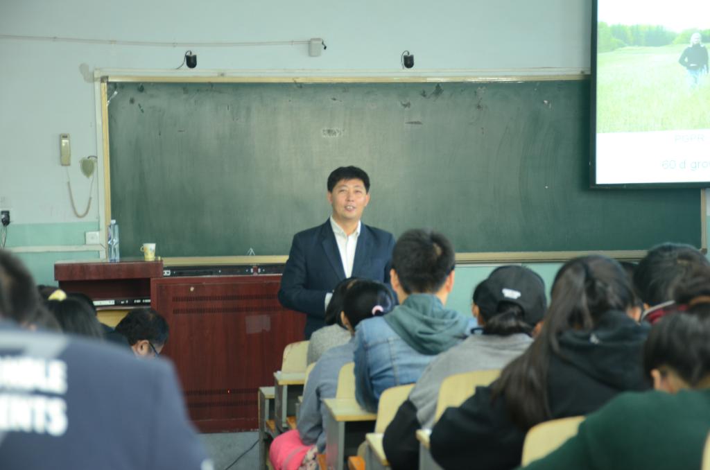 随后,黄晓东博士做了关于加拿大盐碱改良生物技术的报告。黄晓东博士毕业于加拿大滑铁卢大学,2003年创建滑铁卢环境生物科技公司并任总裁,2005年加盟滑铁卢环境生物科技公司,多年来致力于土壤和生态环境的修复工作。他以鲜活的例子,详实的数据,为同学们介绍了利用促生菌与作物耕作系统修复盐碱地的优点。在提问环节,在场同学踊跃提问,黄博士一一认真解答。最后,黄博士希望大家努力学习农业知识,为自身专业发展奠定扎实基础,为祖国的农业发展做出贡献。