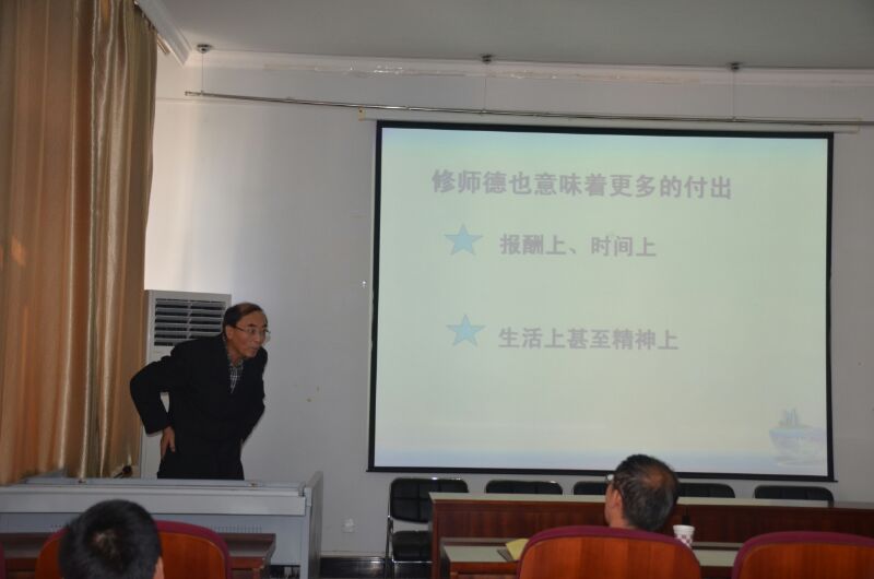 马庆教授在报告中讲到:作为教师要像对待课堂教学任务一样对待实践教学,而且要付出的更多;教师要扮好多个角色,对待员工要亦师亦友亦父;教师在指导员工过程中除传授专业知识外还应注重对员工适应社会能力和生活技能的培养等。马庆教授的报告生动而朴实,赢得了全体老师的掌声。