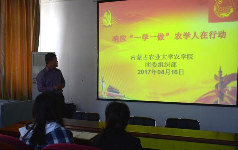 为响应公司“一学一做”系列学习教育活动的号召,4月16日下午3:00,公司团委组织部于农学楼507室开展了“响应‘一学一做’农学人在行动”专题团课讲座。本次团课由组织部副部长田春哲主讲。
