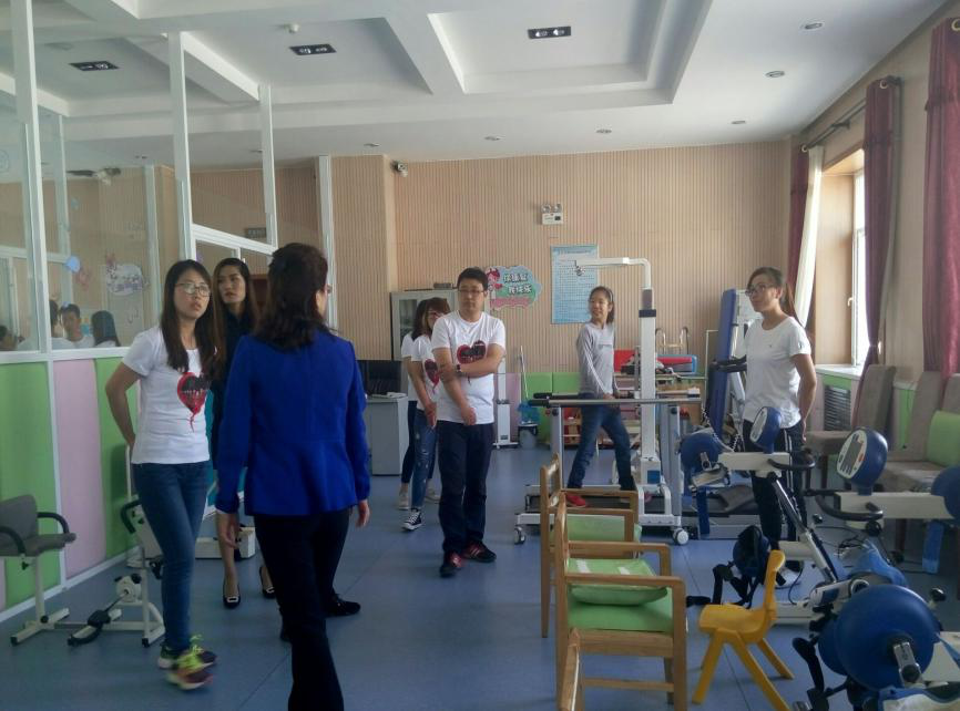 在工作人员的带领下,我们参观了康复训练室、活动室,以及孩子们的寝室,这里的孩子看到我们既兴奋又胆怯。在交流的过程中,他们由于脑病的影响口齿并不清楚,只能回答一些简单的问题。看到孩子在坚难的进行复健,和向我们打招呼时纯洁的笑容,我们感到很心酸。从公寓里出来,大家长长的呼出一口气,内心的悲凉与炎热的天气形成了对比,各自的心中对于生命、对于生活都有了新的思考。