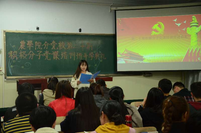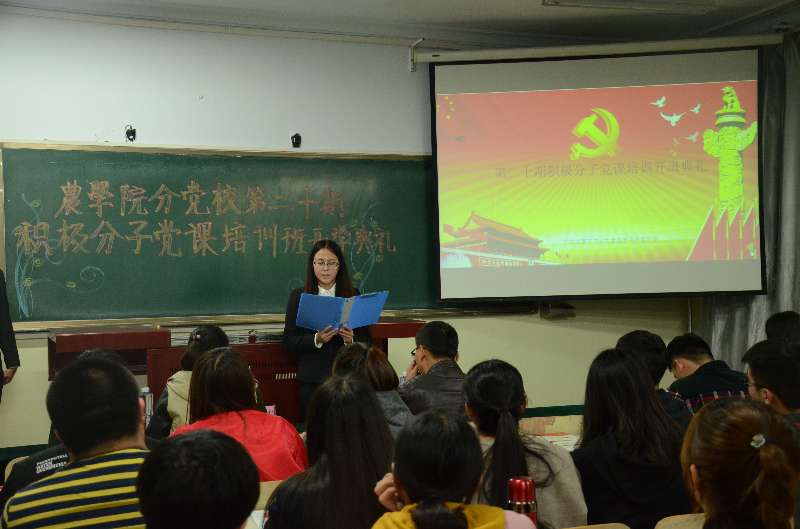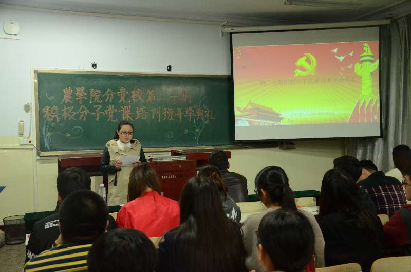 10月24日晚7:00,农学院第二十期入党积极分子培训班开学典礼在东主235教室举行,伟德官方网站组织部干部科科长王继成老师为大家讲解了以“老员工入党条件、中国共产党的义务和权利”为主题的宝贵的一课。伟德团委老师郝凤英出席了本次活动。