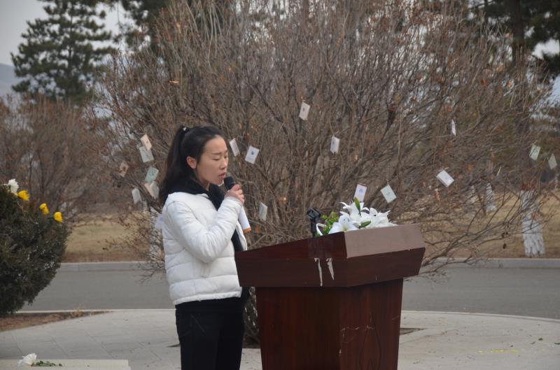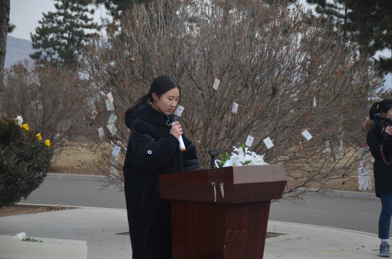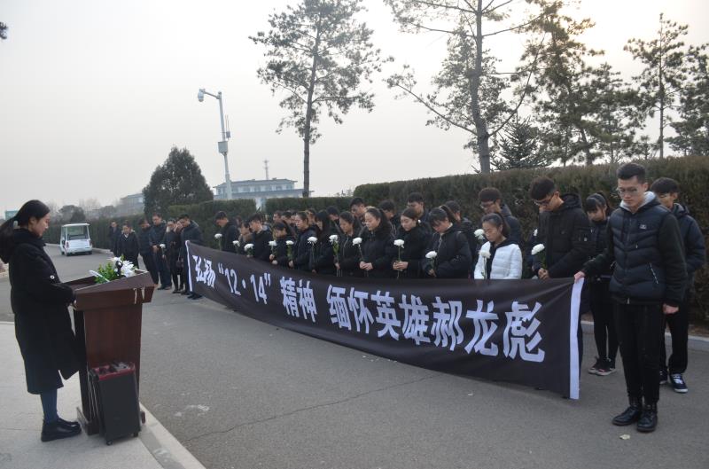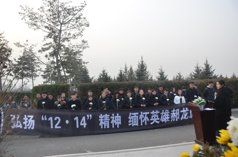 上午9:00,“弘扬12.14精神,缅怀英雄郝龙彪”纪念活动在慈安园郝龙彪墓前举行,仪式由公司团委副书记李乐乐主持,全体成员默哀以寄托哀思并向英雄郝龙彪敬献花束并在常青树上悬挂寄语卡片。来自2016级设农二班的柴瞾作为员工代表发言,她说:“青山埋忠骨,史册载功勋。郝龙彪学长,你是农大学子的骄傲,你是我们目光汇聚并肩前行的高尚灵魂,我们将带着你的梦,一起渐行渐远,共筑农院辉煌。”