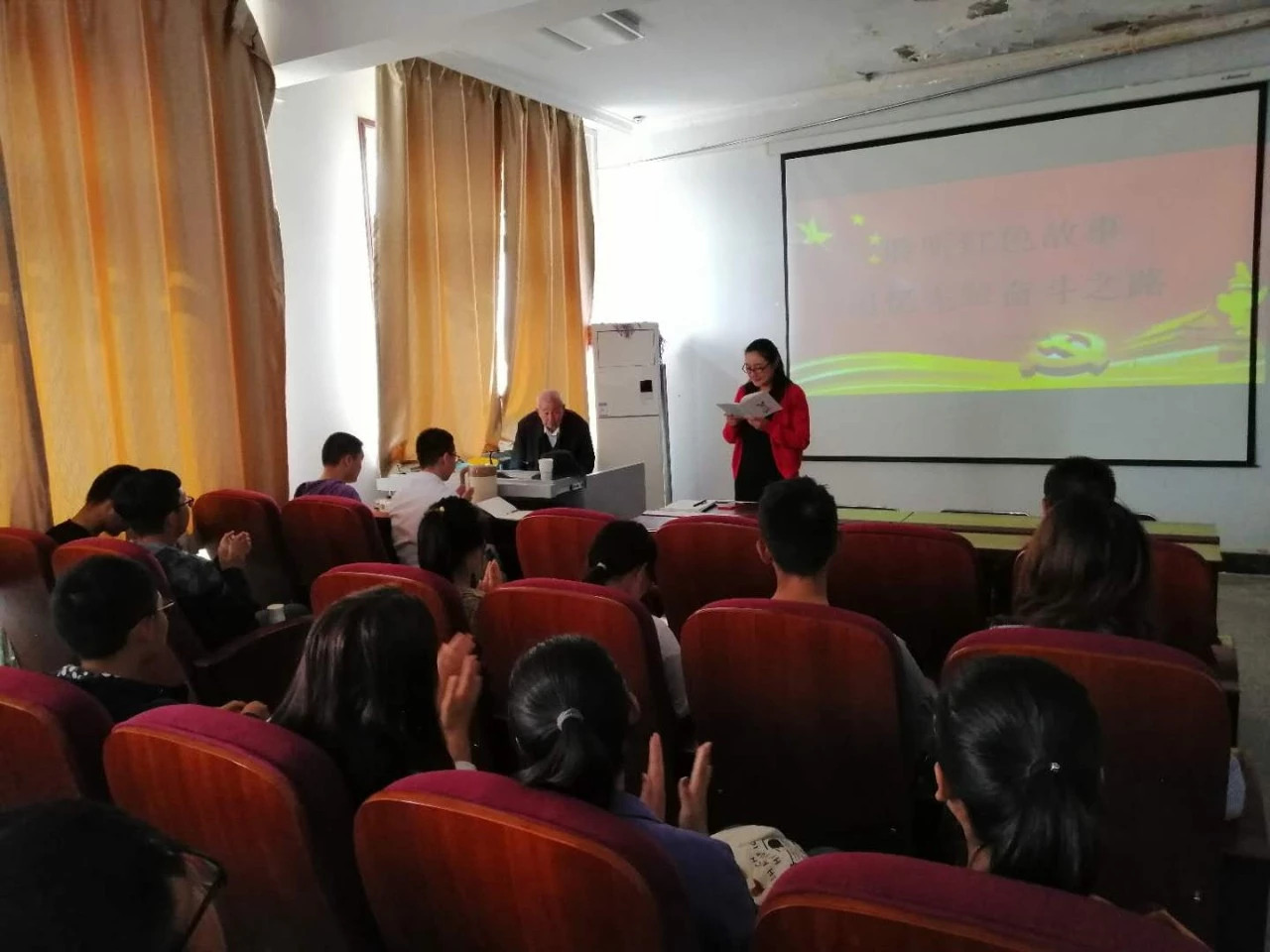 胡老先生是我们伟德官方网站的一位离休老干部。从1953年来到内蒙古农牧公司至今已经六十余载,见证了伟德官方网站的成长发展历程。首先,胡老先生对9.18事变日本侵略者在华犯下的滔天罪行进行陈述。接着,胡老师带领大家回忆了日本在东北建立伪满洲帝国后,中国青年在日本残酷的统治和艰苦的环境下如何生活与求学,如何在斗争中坚持自己的信仰与文化。他慷慨激昂的解说博得台下观众的阵阵掌声。最后,老先生语重心长地对同学们说:“事变给中华民族带来深重灾难与艰辛,炎黄子孙永远不能忘怀,要将满腔的爱国热情转化为工作学习的动力,为中华民族的伟大复兴而努力奋斗。”坐在台下的同学们认认真真地听胡老讲述着,眼神里流露出对胡老深深的敬意。