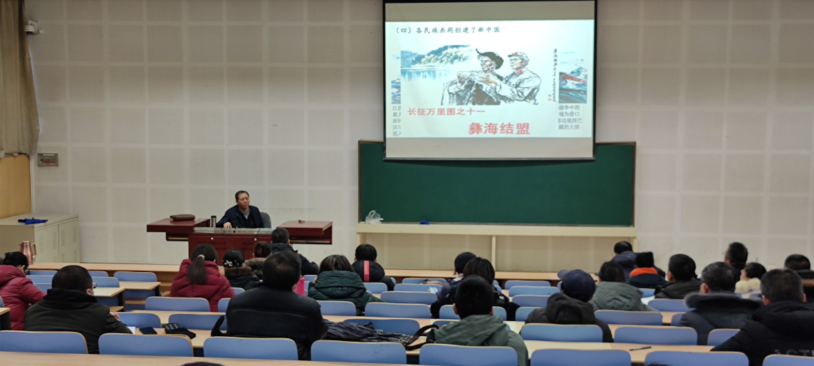 12月31日下午,按照公司铸牢中华民族共同体意识培训教育活动集中授课的安排,伟德与马克思主义公司、人文社会科学公司在电教楼听取马克思主义公司副教授布和老师“铸牢中华民族共同体意识 促进民族团结”的讲座。