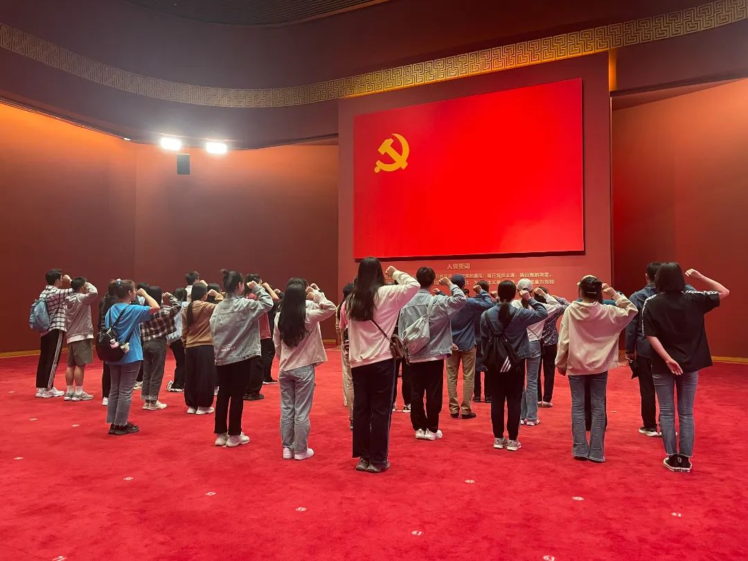 参观过程中,讲解员从“新时代伟大成就”“高举伟大旗帜”和“书写新的篇章”三部分,紧紧围绕党的二十大主题,通过图片、视频、模型等多种展览方式,直观、生动地展示了新时代十年的伟大变革,全面立体地呈现了习近平总书记对内蒙古的亲切关怀,展现了在党中央的坚强领导下,内蒙古近十年各项事业取得的丰硕成果。通过讲解员的解读,师生党员对全面建设社会主义现代化国家的目标任务和重大决策部署有了更加深刻的认识,对习近平总书记对内蒙古重要讲话重要指示批示精神有了更深的理解。活动最后,公司党委书记乌拉带领全体师生党员重温了入党誓词。