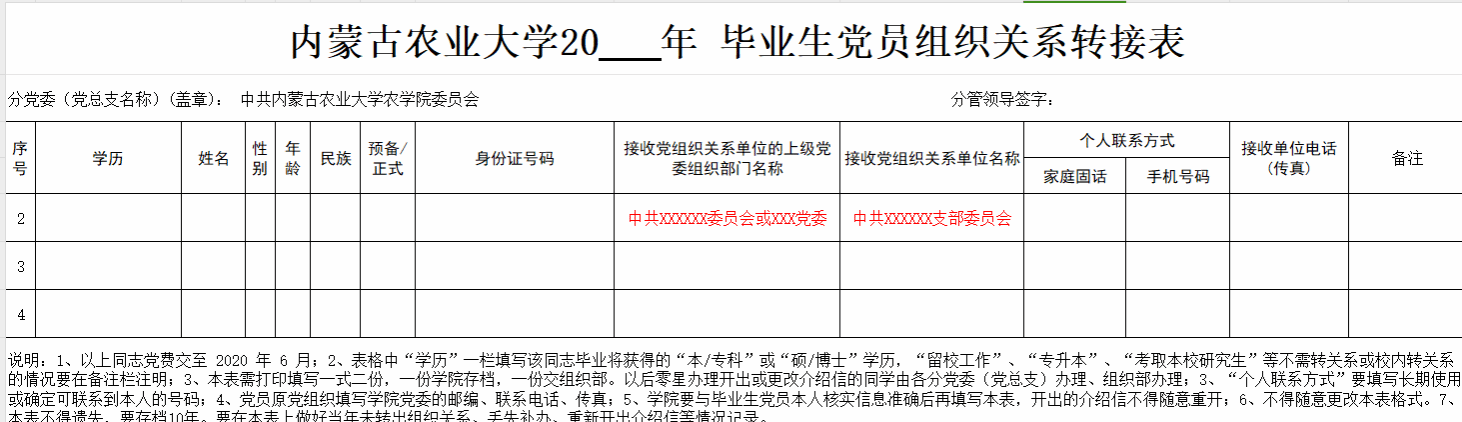 (样表)毕业生党组织关系转接表
