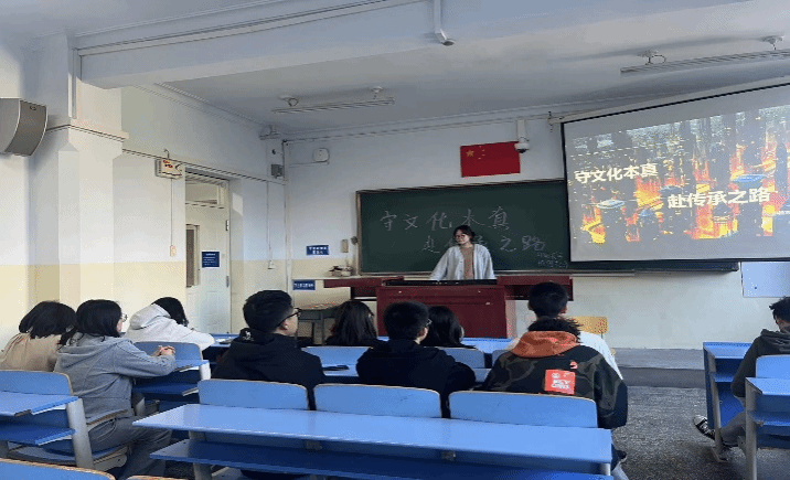 1.举办“守文化本真,赴传承之路”为主题的专题研讨。首先,各团支部书记向同学们阐明文化守护与传承的现状和挑战;其次,同学们积极讨论关于中华文化自信的缺失和文化失传的现象及原因;最后,同学们对“青年人在文化守护与传承的使命与担当、青年人在新时代对于文化守护与传承的创新建议”这一主题进行了踊跃发言。