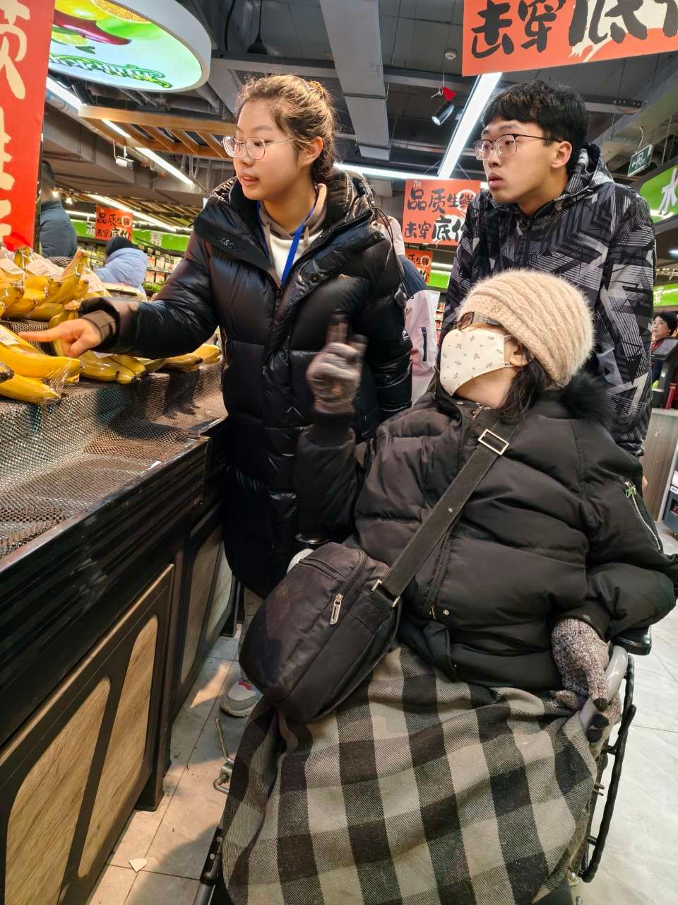 随后,“青马班”成员们又开启了另一项暖心行动。他们陪同叶大姐到达超市,帮助叶大姐挑选了各类生活用品,从米面粮油到生活日用品,每一样都是经过仔细斟酌,希望能切实满足叶大姐日常生活的需要。