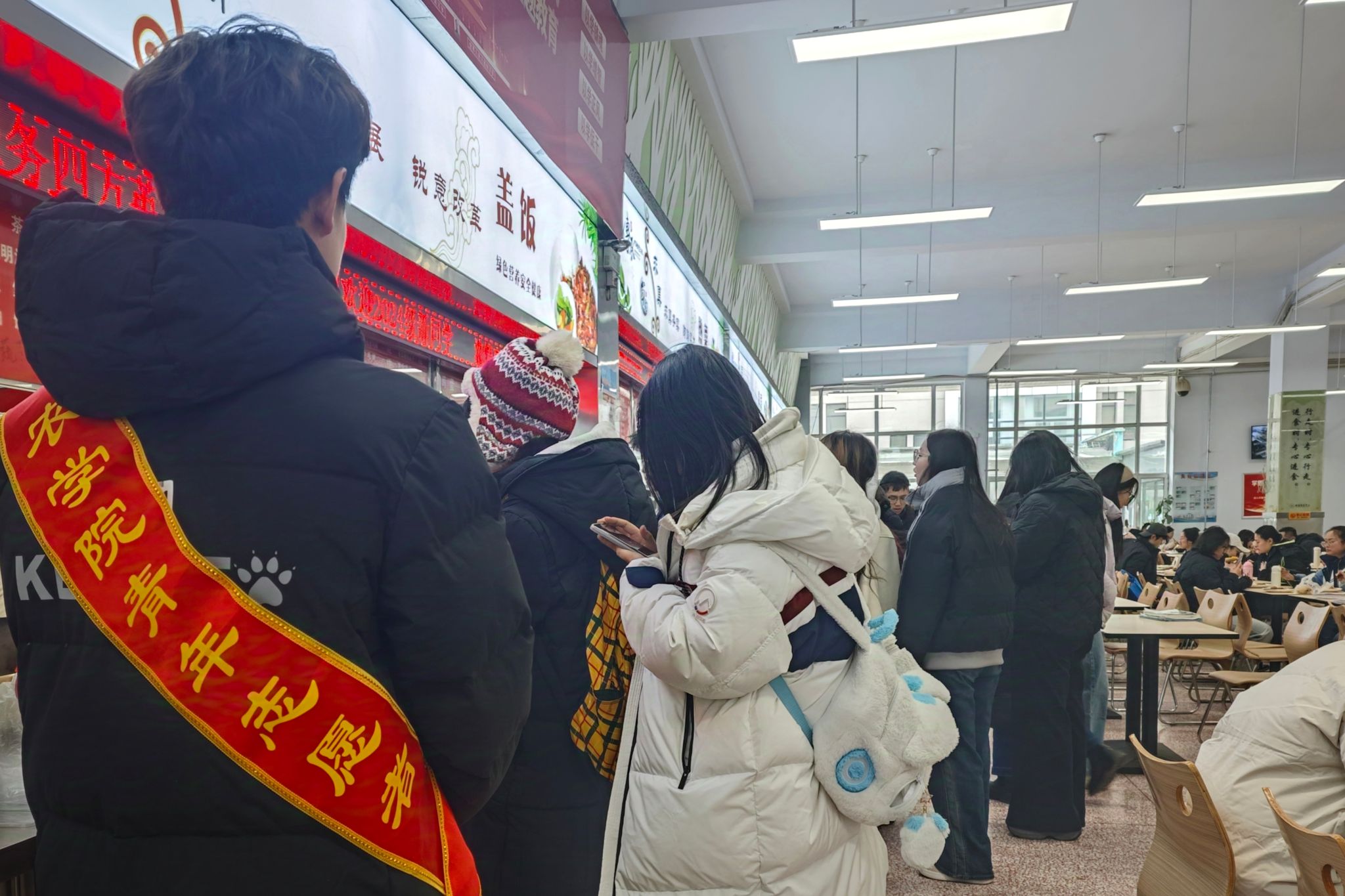 活动现场,志愿者们积极发挥引导作用。他们忙碌于餐厅各处,全力维护同学们排队就餐的秩序,耐心劝导同学们遵守食堂就餐的相关规定,有序打饭打菜,避免插队、拥挤等不文明行为。同时,志愿者们还注重对文明就餐细节的倡导,提醒同学们在用餐过程中不要乱丢垃圾,要将废弃纸巾、垃圾等妥善放置,为大家营造一个舒适的就餐环境。
