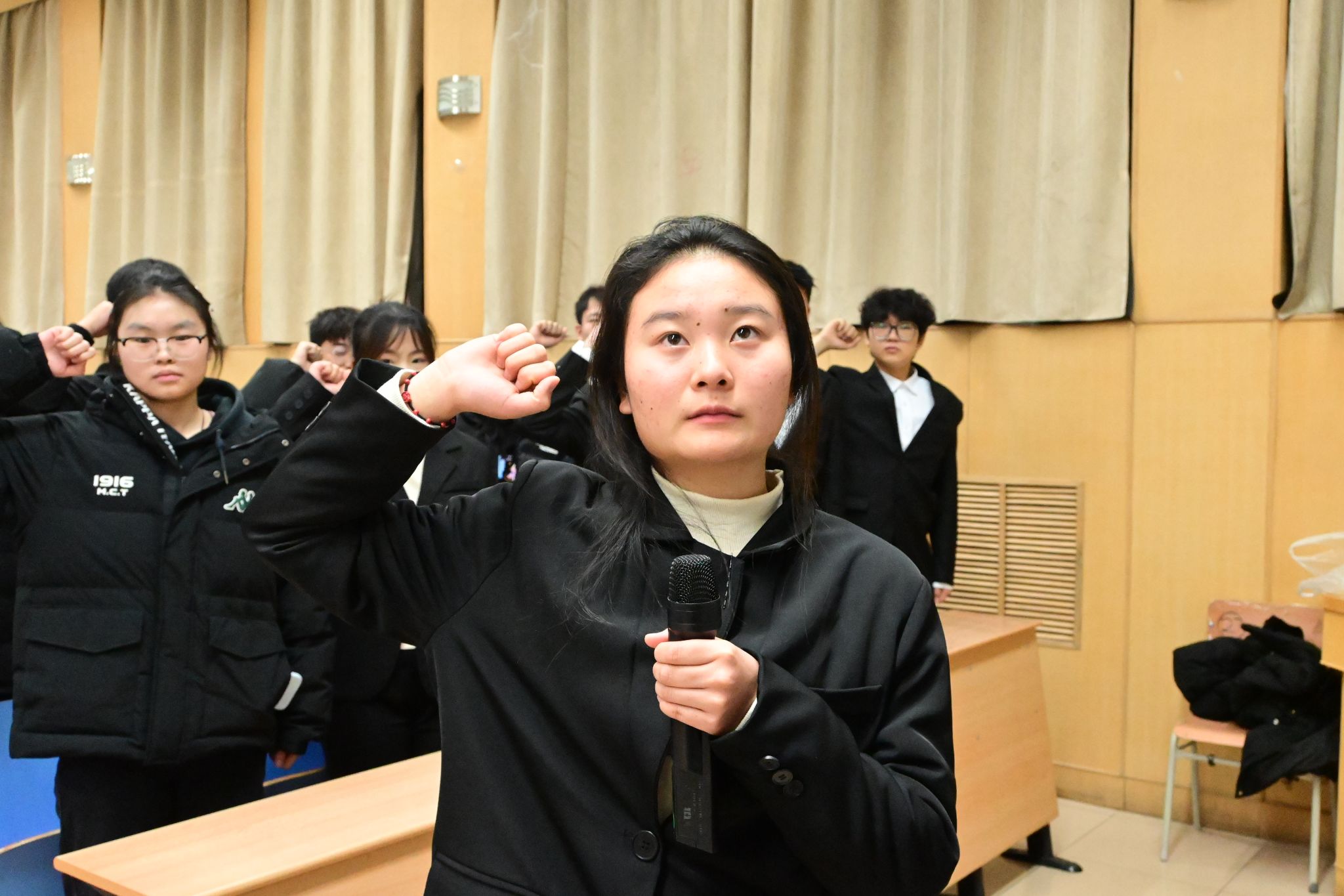 在重温入团誓词环节,同学们以青春之名向英雄宣誓,承诺继承英雄遗志,为实现中华民族伟大复兴的中国梦而拼搏奋斗。