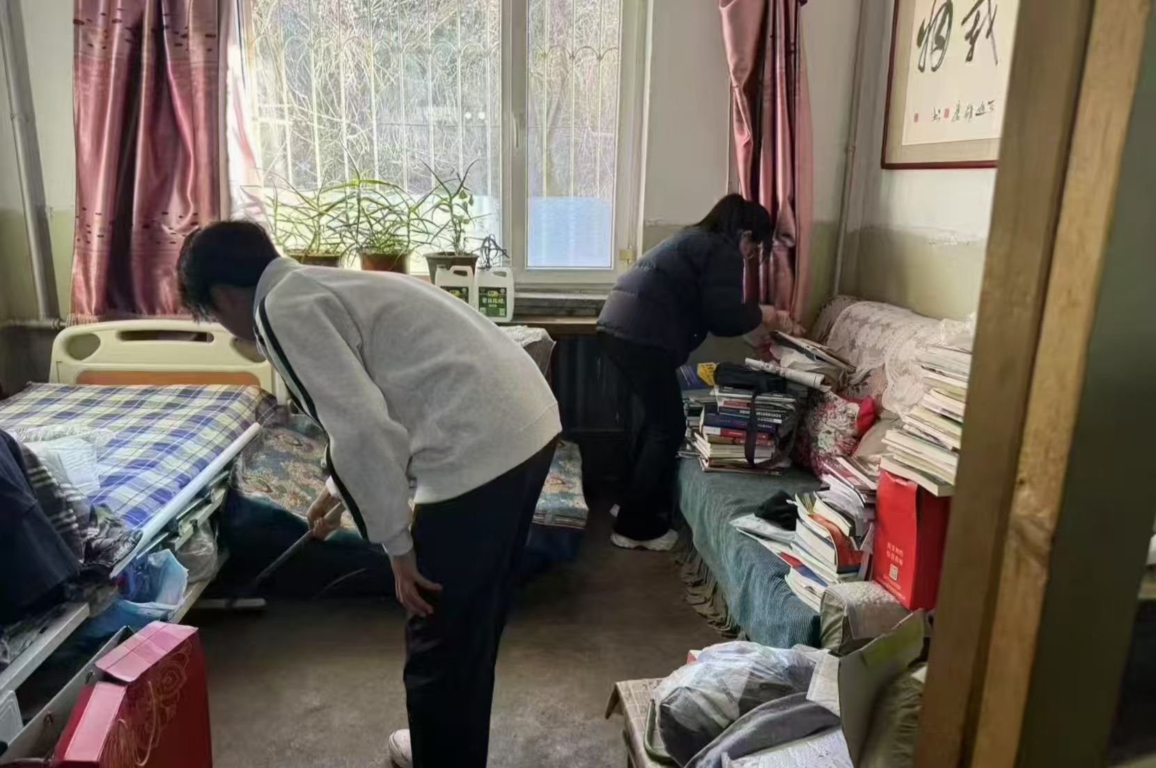 来到叶大姐家中,同学们纷纷主动为叶大姐打扫房间,打扫整理家中的每个角落,细致入微。