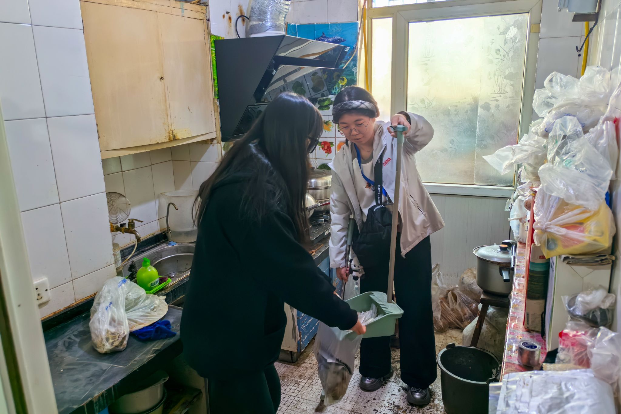 到达叶大姐家后,志愿者们迅速行动起来,有条不紊地分工合作。一部分志愿者细心地帮叶大姐整理衣物,将衣物分类折叠,把当季衣物放置在便于拿取的位置,同时对旧衣物进行筛选整理。另一部分志愿者则投入到房间的清洁工作中。他们认真打扫每一个角落,擦拭家具,清除灰尘,让原本杂乱的房间焕然一新。在整理杂物时,志愿者们耐心地与叶大姐交流,了解每件物品的用途和意义,在保留有价值物品的同时,妥善处理无用杂物,让空间更加整洁有序。