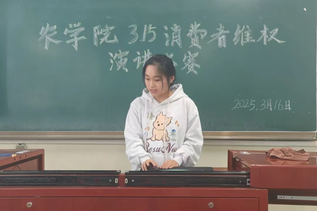 活动中,各位参赛者们由浅入深,结合近期“3.15”晚会曝光出来的企业侵犯消费者权益的例子,论证了我们增强维权意识的必要性,并呼吁全体同学要行动起来,在力所能及的范围内捍卫自己的权利,积极检举,创造良好的经营环境。在激烈的比拼之后,评委们从演讲内容、语言表达、情感传递等多个维度进行了认真的打分。