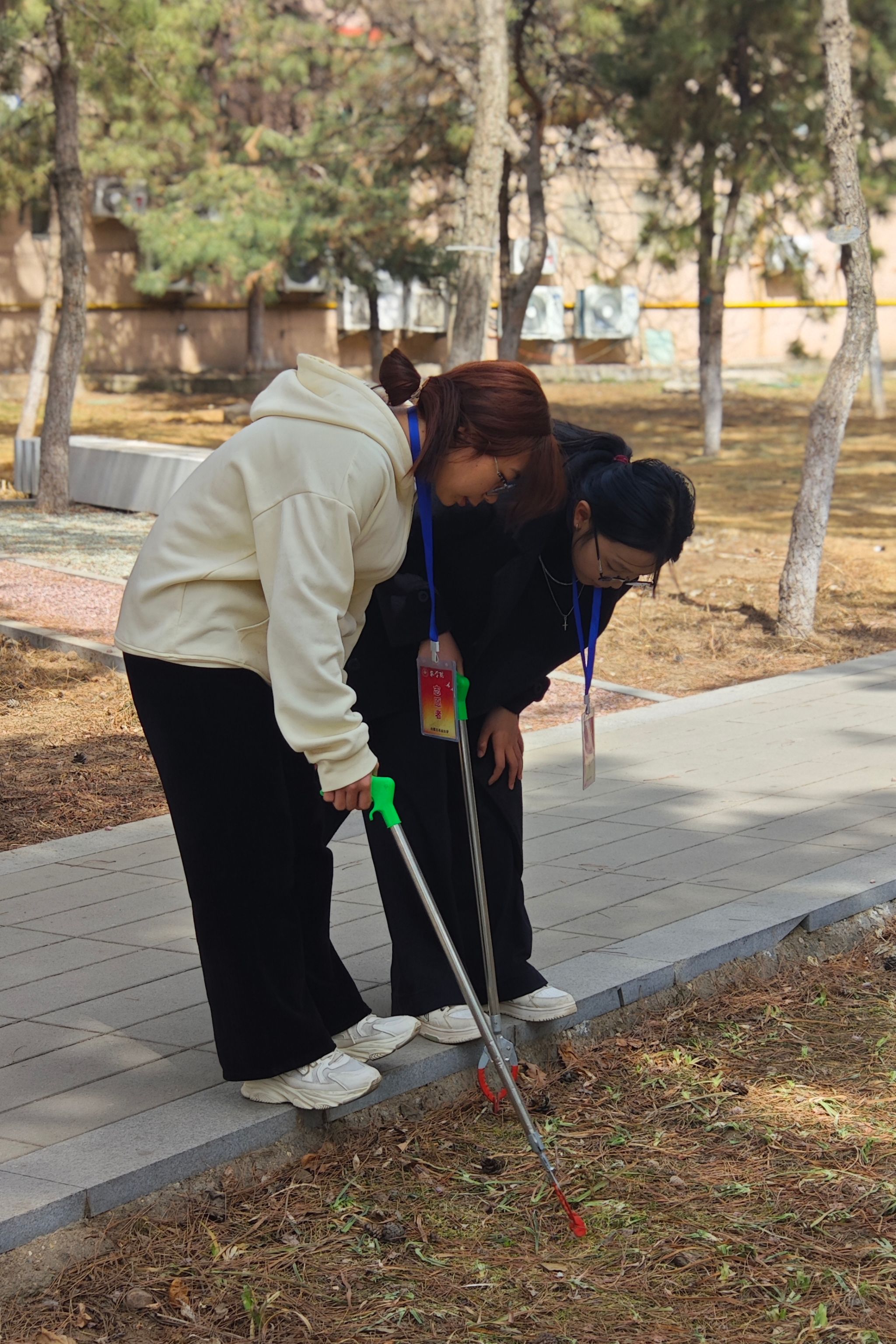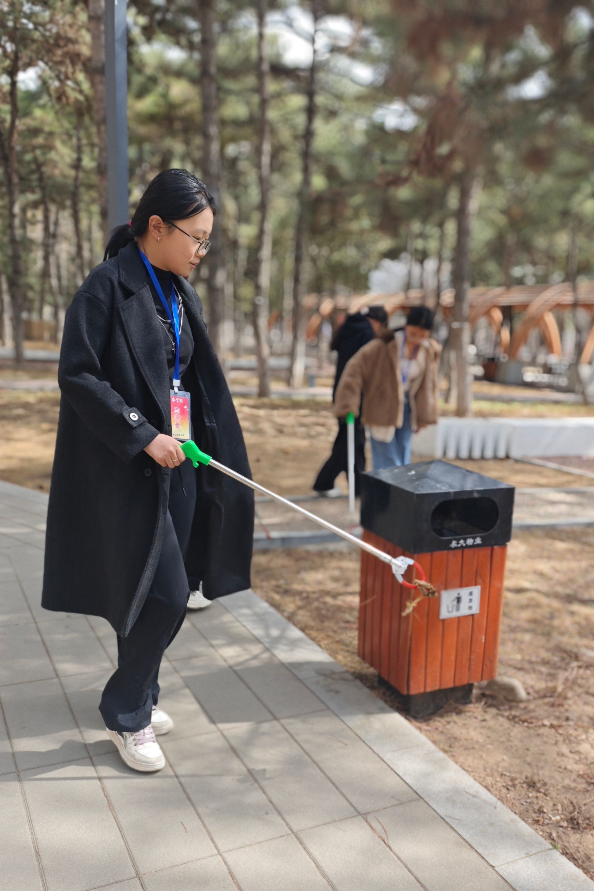 活动当日,志愿者们准时集结,带着扫帚、垃圾袋等清洁用具,满怀热忱地踏入员工林。他们分工清晰,配合默契,仔细清扫树林里的落叶、杂物。天气凉爽,同学们干劲十足,历经半小时的努力,员工林的杂物和垃圾被清理到垃圾桶。整洁的环境成为校园中一道亮丽的风景线。