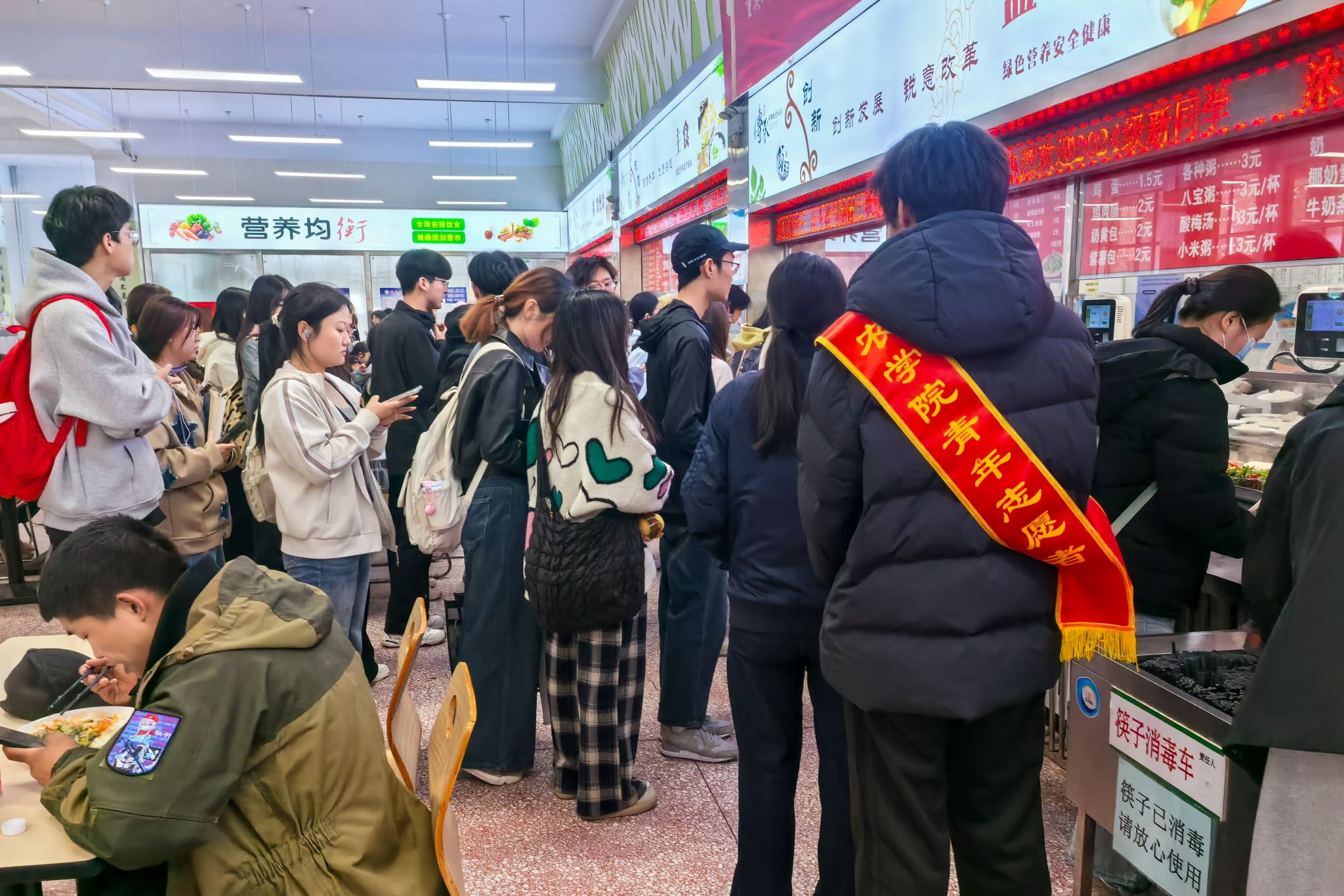 活动期间,志愿者们充分发挥引导作用。他们在餐厅的每一个角落,尽心尽力维护着排队就餐的良好秩序,耐心细致地劝导同学们遵循食堂秩序,确保用餐过程井然有序,有效减少了插队、拥挤等不良行为。同时,志愿者们还特别注重文明就餐的细微之处,提醒同学们用餐时不要随意丢弃垃圾,要将废弃物品妥善处理,共同营造一个干净舒适的就餐环境。