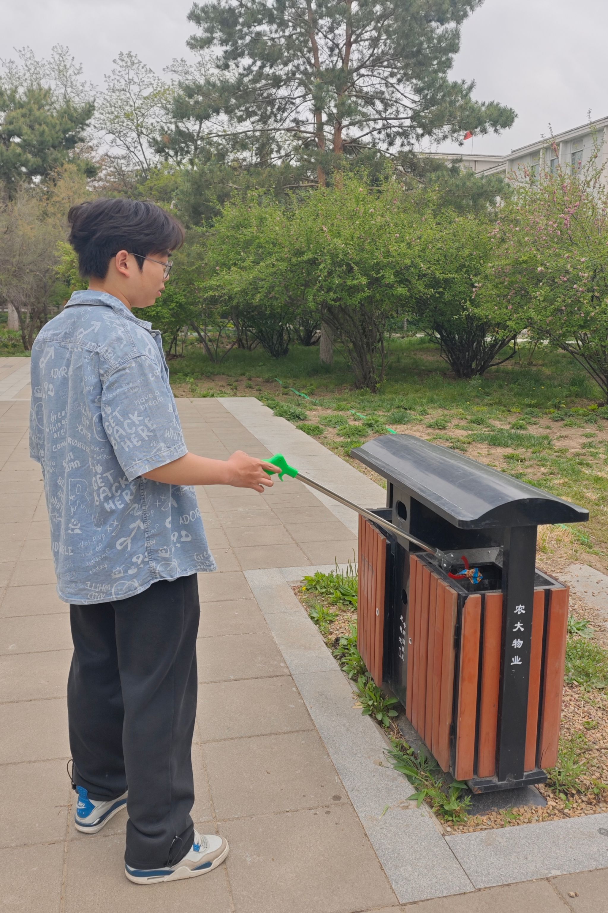 活动现场,志愿者们手持扫帚、垃圾袋、垃圾夹等工具,穿梭于员工林的各个角落。有的同学仔细地用夹子夹出藏在灌木丛中的塑料袋、零食包装袋;有的认真清扫小径上的落叶、尘土,将它们归拢成堆;还有的负责将垃圾小心地装进袋子,确保不遗漏任何一处卫生死角 。尽管天气有些闷热,但志愿者们热情不减,干劲十足。经过半个小时的努力,员工林面貌焕然一新。原本散落的垃圾消失不见,整洁的小径与葱郁的草木相映成趣,清新的环境让人心情舒畅。