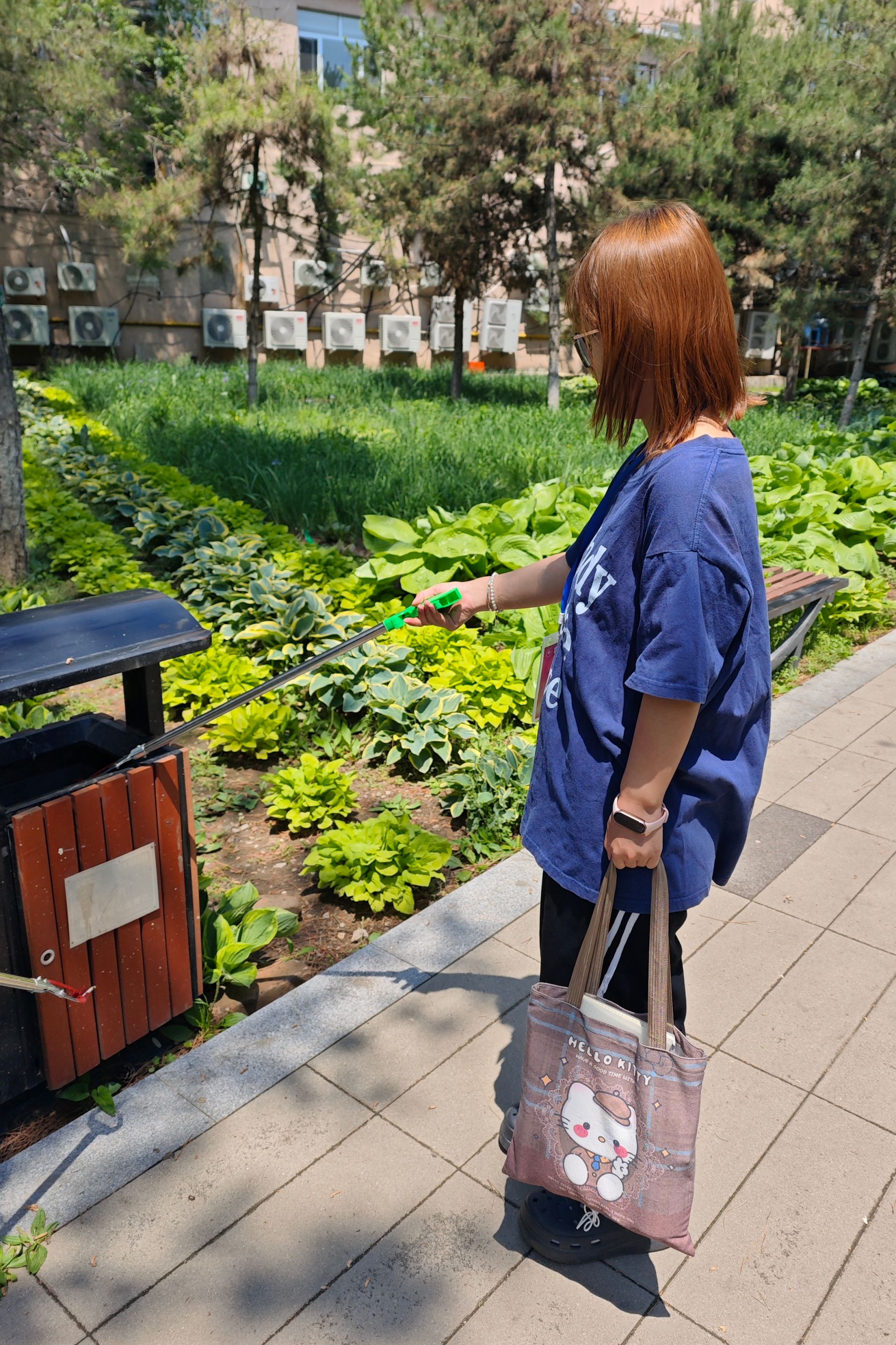 在员工林里,志愿者们热情高涨,分工明确。大家手持清洁工具,有的负责清扫主干道上的花瓣,有的深入绿化带清理隐藏的垃圾。在志愿者们的辛勤付出下,员工林更加干净整洁。